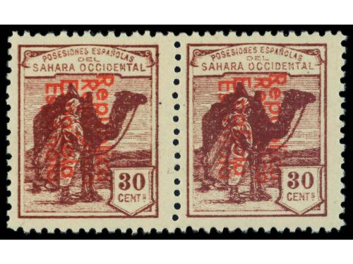 ** COLONIAS ESPAÑOLAS: SAHARA. Ed. 41Ahcc(2). 30 cts. castaño rojizo en pareja horizontal con HAB. DOBLE EN COLOR ROJO. MUY BONITA. RARA. Cat. 720€.