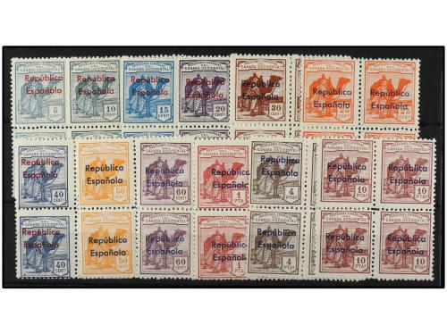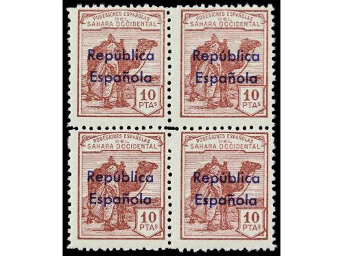 ** COLONIAS ESPAÑOLAS: SAHARA. Ed. 36B/47B. SERIE COMPLETA. 12 valores en bloques de cuatro. HABILITACIÓN HORIZONTAL. Cat. 2.220€.