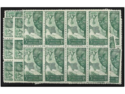 ** COLONIAS ESPAÑOLAS: SAHARA. Ed. 87 (62). 5 pts. verde. 62 sellos en bloques. Cat. 1.860€.
