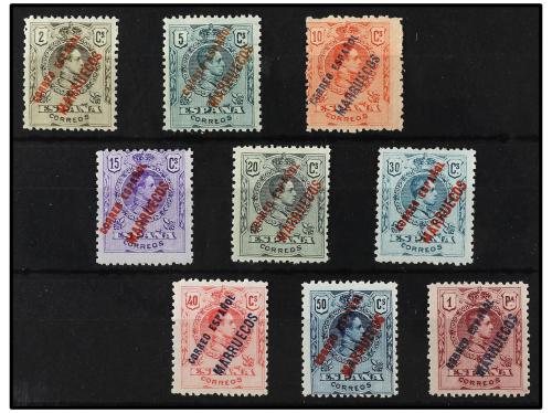 ** COLONIAS ESPAÑOLAS: TANGER. Ed. 1/9. SERIE COMPLETA, 9 valores. Mayoría centrados. Cat. 300€.