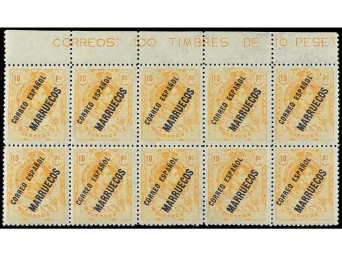 ** COLONIAS ESPAÑOLAS: TANGER. Ed. NE 3. 10 pesetas naranja. Bloque de 10. No expendido. Cat. 1.300€.