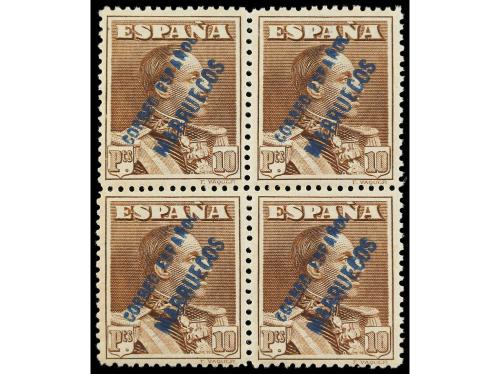 ** COLONIAS ESPAÑOLAS: TANGER. Ed. NE 4/6. 1 pta., 4 pts. y 10 pts. NO EXPENDIDOS. Bien centrados. BLOQUE DE CUATRO. RAROS. Cat. 4.200€.