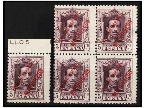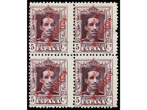 ** COLONIAS ESPAÑOLAS: TANGER. Ed. 51. 5 céntimos lila. 5 sellos. Centrado de emisión. Cat. 2.950€.