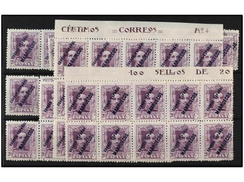 ** COLONIAS ESPAÑOLAS: TANGER. Ed. 54. 20 c. violeta. 60 sellos en bloques. Cat. 3.960€.