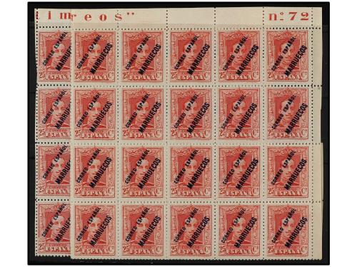 ** COLONIAS ESPAÑOLAS: TANGER. Ed. 55. 25 c. carmín. 50 sellos en bloques. Cat. 3.850€.