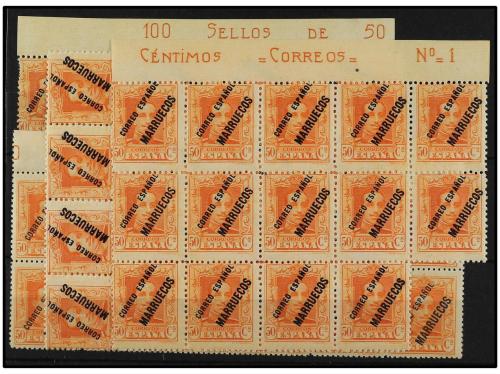 ** COLONIAS ESPAÑOLAS: TANGER. Ed. 58. 50 c. naranja. 47 sellos en bloques. Cat. 3.760€.