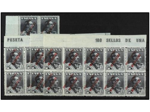** COLONIAS ESPAÑOLAS: TANGER. Ed. 59. 1 pta. gris. 30 sellos en bloques. Cat. 2.880€.