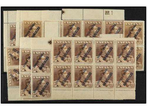 ** COLONIAS ESPAÑOLAS: TANGER. Ed. 61. 10 pts. castaño. 68 sellos en bloques. Cat. 4.080€.