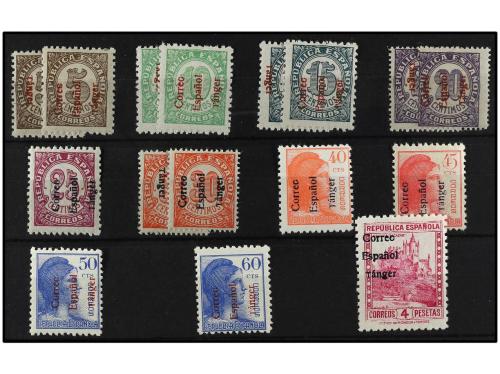 ** COLONIAS ESPAÑOLAS: TANGER. Ed. 96/105 y 107. SERIE COMPLETA, 16 valores a falta del 2 pts. incluyendo 5 con habilitación invertida. Todas variedad "Correc".