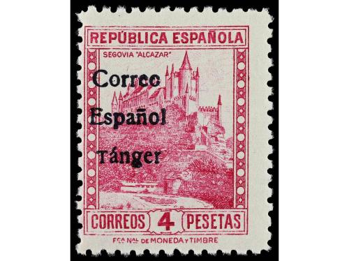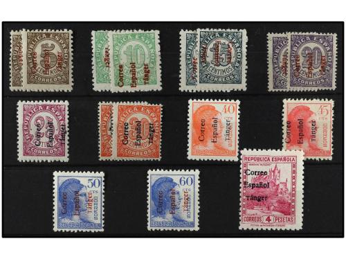 ** COLONIAS ESPAÑOLAS: TANGER. Ed. 96/105 y 107. SERIE COMPLETA, 16 valores a falta del 2 pts. incluyendo 5 con habilitación invertida. Todos variedad "Correc".