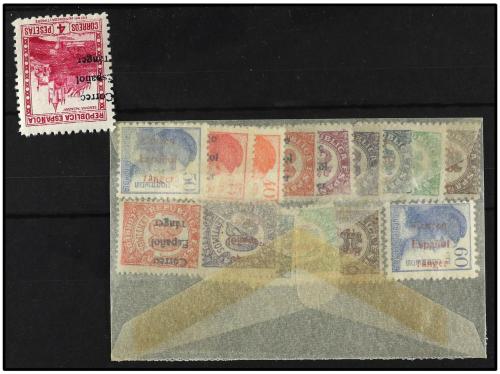 ** COLONIAS ESPAÑOLAS: TANGER. Ed. 96/105 y 107. SERIE COMPLETA a falta del 2 pts. 16 valores incluyendo 5 con habilitación invertida. Todas variedades "Correo".