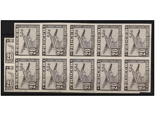 ** COLONIAS ESPAÑOLAS: TANGER. Ed. 166s. 20 céntimos lila SIN DENTAR. 20 sellos en bloques. Cat. 1.900€.