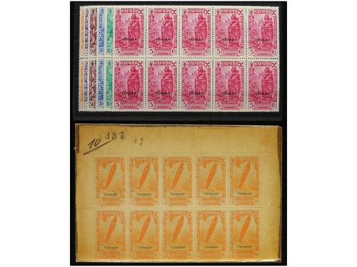 ** COLONIAS ESPAÑOLAS: TANGER. Ed. 6/11 (42). BENEFICIENCIA. 42 SERIES COMPLETAS, 6 valores sueltos y en bloques. Cat. 3.780€.