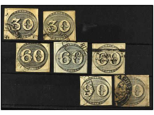 ° BRASIL. Yv. 1/3. 1843. 30 r. (2), 60 r. (3) Y 90 r. (2). T ° BRASIL. Yv. 1/3. 1843. 30 r. (2), 60 r. (3) Y 90 r. (2). T
