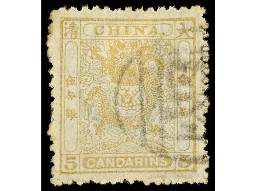 ° CHINA. Yv. 6. 1885. 5 c. 7 sellos usados. Calidad mixta. Cat. 700€.