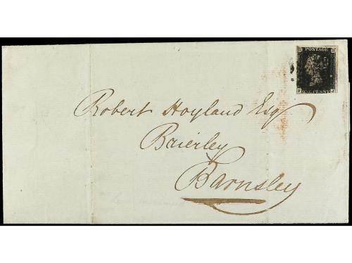 GRAN BRETAÑA. Sg. 1. Envuelta a BARNSLEY. 1 p. negro con mat. ilegilble. A EXAMINAR. Cat. 700£.
