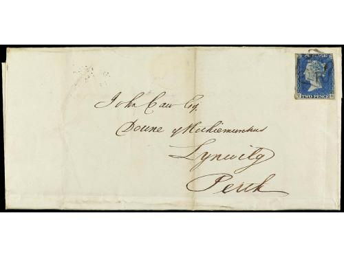 GRAN BRETAÑA. Sg. 2. 1843. Envuelta a PERTH. 2 p. azul con mat. Cruz de Malta en azul. A EXAMINAR. Cat. 2.500£.
