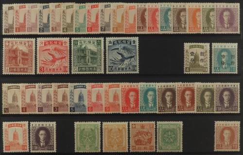 MANCHUKUO. 1932-1935. CONJUNTO de series y sellos de este período en nuevo, con y sin fijasellos, entre Yvert 1 a 54. Montado en ficha. Cat. aprox. 500Ђ. Algún valor, levemente tonalizado. RAROS.