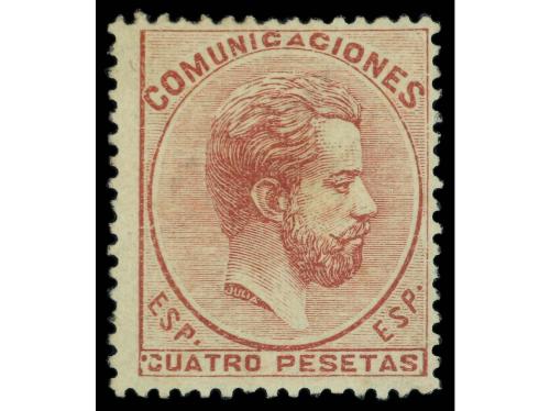 * ESPAÑA. Ed. 151. 4 pts. carmín. Precioso sello pese a estar tratado para eliminar manchitas de óxido. Dictamen CEM. RARO. OCASION. A EXAMINAR.