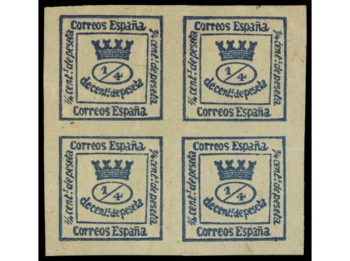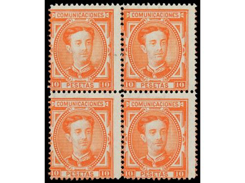 ** ESPAÑA. Ed. 174/7 y 179/82 (4). SERIE COMPLETA a falta del 40 cts. en bloques de cuatro. Rara sin fijasellos. Cat. +1.600€.