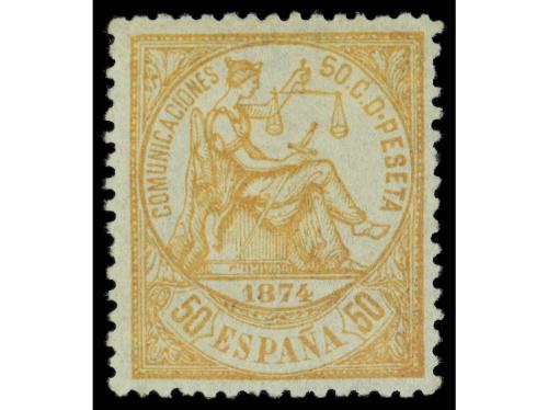 * ESPAÑA. Ed. 149. 50 cts. amarillo. Centrado perfecto. LUJO. MUY RARO.