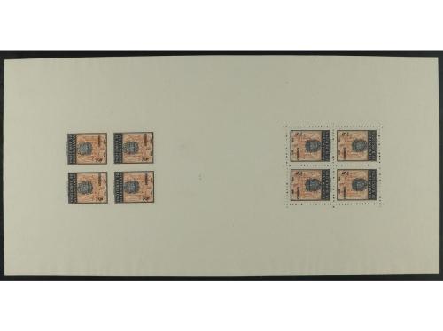 ** ESPAÑA VARIOS. Ed. **T.11(4) y T.11ns(24). TELEGRAFOS. 20 cts. s. 5 cts. naranja y castaño. Bloque de 4 dentado, bloque de 20 SIN DENTAR con INTERPANEL y bloque de 4 SIN DENTAR (ambos SIN NUMERACION). Buena calidad. OCASION. Cat. 2.400€.