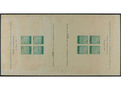 ** ESPAÑA: AYUNTAMIENTO DE BARCELONA. Ed. NE32(4). 4 HB. en un pliego formado por parejas horizontales o verticales CAPICUAS. Goma habitual de estas emisiones. MUY RARO. A EXAMINAR. Cat. 1.050€.