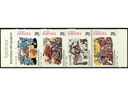 ** ESPAÑA. Ed. 3561/4/7/70. CORRESPONDENCIA EPISTOLAR. Tira vertical con DENTADO HORIZONTAL PARCIALMENTE SIN DENTAR. PRECIOSA. MUY RARA.