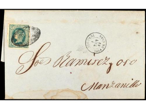 COLONIAS ESPAÑOLAS: CUBA. 1864-1865. Conjunto de 3 cartas con sello de 1/2 real verde. Circuladas con diferentes salidas. A EXAMINAR.