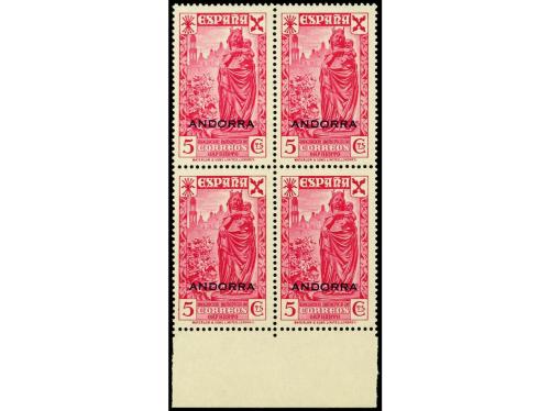 ** ANDORRA. Ed. B.7/12(4). BENEFICENCIA. SERIE COMPLETA en bloque de 4 con borde inferior de hoja. LUJO. OCASION. Cat. 1.420€.