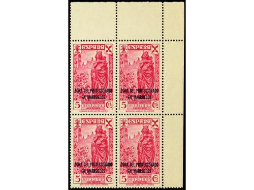 ** COLONIAS ESPAÑOLAS: MARRUECOS. Ed. B.26/31(4). BENEFICENCIA. SERIE COMPLETA en bloque de 4. Todos borde o esquina de pliego. PRECIOSA. OCASION. Cat. 960€.