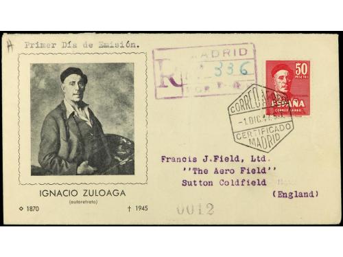 ✉ ESPAÑA. Ed. 1015/6. SERIE COMPLETA en 2 cartas dirigidas a SUTTON (INGLATERRA) el PRIMER DIA DE EMISION (1 Dic. 1947). PRECIOSAS. MUY RARAS.