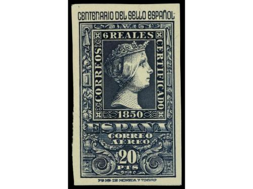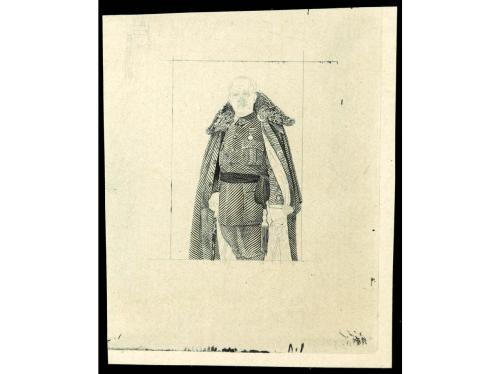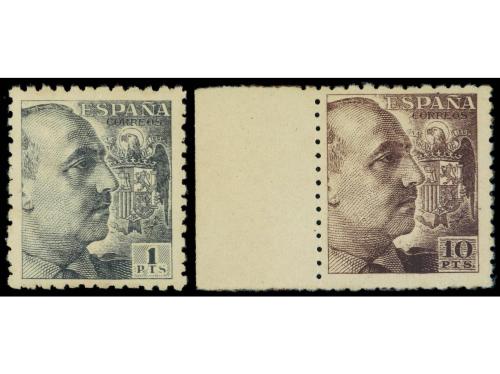 ESPAÑA. FRANCO. PRUEBA DE ESTADO en negro para unos sellos de 1, 4 y 10 pts. que no llegaron a emitirse, pero se aprovecho parcialmente para el No Expendido y la emisión de 1948. Rarísma, no más de 3 o 4 conocidas.