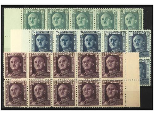 ** ESPAÑA. Ed. 999/1001(10) y 1123(10). SERIE COMPLETA en bloque de 10 (bonitos centrados) y 10 sellos de 25 cts. en dos bloques de 4 y dos sueltos (valor clave). Buena calidad. Cat. 327,50€.