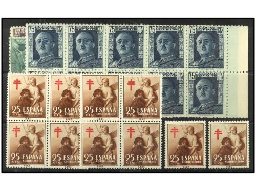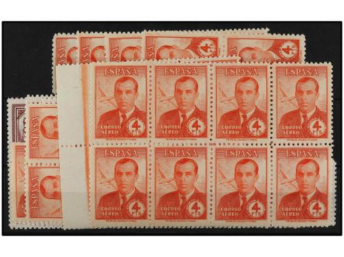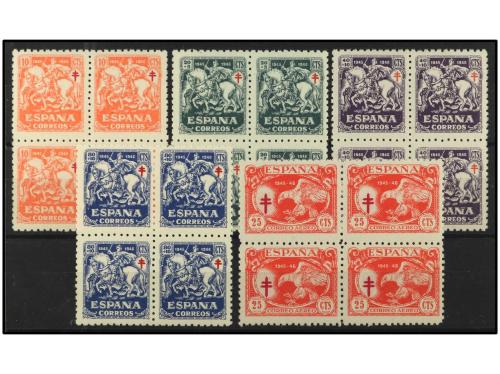 ** ESPAÑA. Ed. 930(4), 932/3(4) Y 935(4). 1, 2, 4 y 10 pts. en bloques de 4. Bien centrados. PRECIOSOS. OCASION. Cat. +524€.