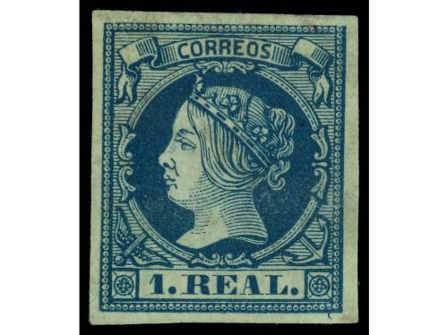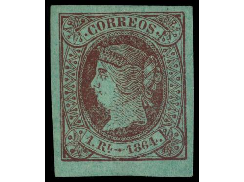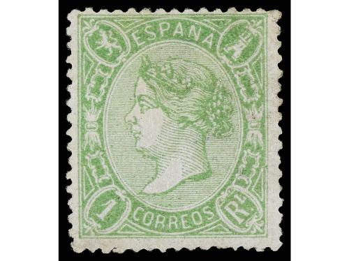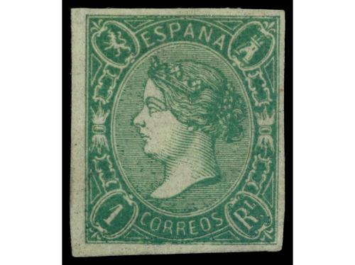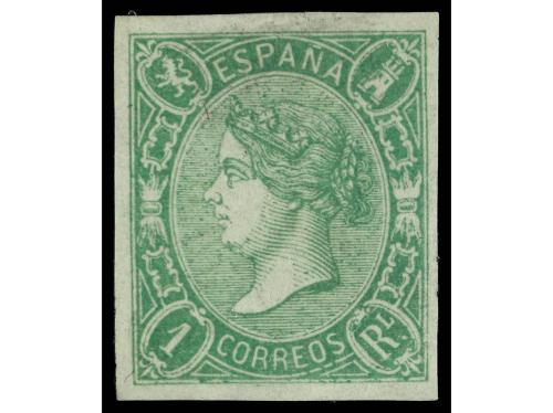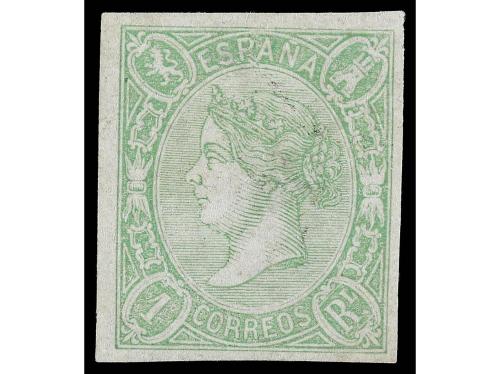 (*) ESPAÑA. Ed. 72. 1 real verde, grandes márgenes. Algún puntito negro al dorso y frente. Gran aspecto y buen ejemplar. Cat. 550€.