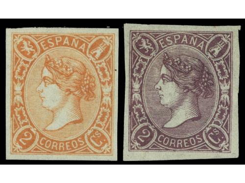 ESPAÑA. Ed. 69P(2). 2 cuartos. 2 PRUEBAS en colores amarillo y violeta negro (Cert. COMEX). Galvez 315/6. PRECIOSAS. RARAS.