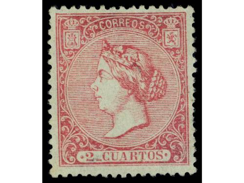 * ESPAÑA. Ed. 69. 2 cuartos carmín. Precioso sello por su color y amplios márgenes pese a tener pequeño punto claro. OCASION. A EXAMINAR. Cat. 430€.