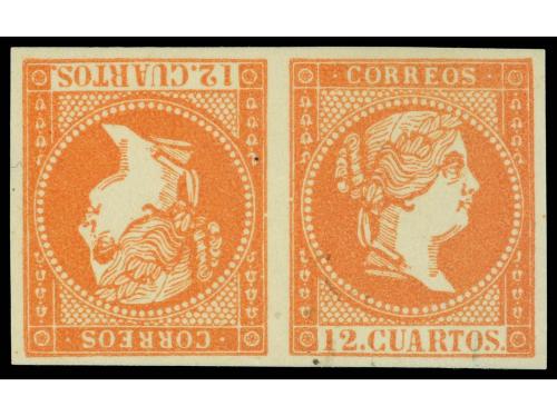 ** ESPAÑA. Ed. NE1Ac. 12 cuartos naranja oscuro en pareja horizontal CAPICUA. Cert. GRAUS. PRECIOSA. MUY RARA.