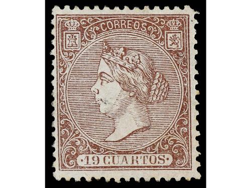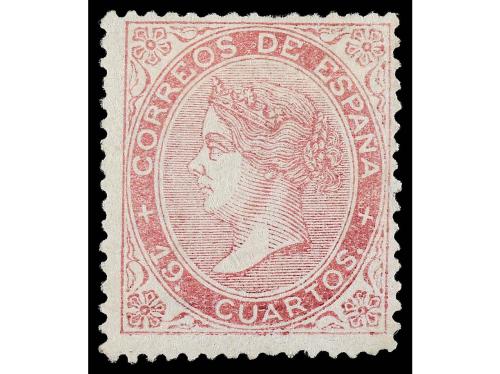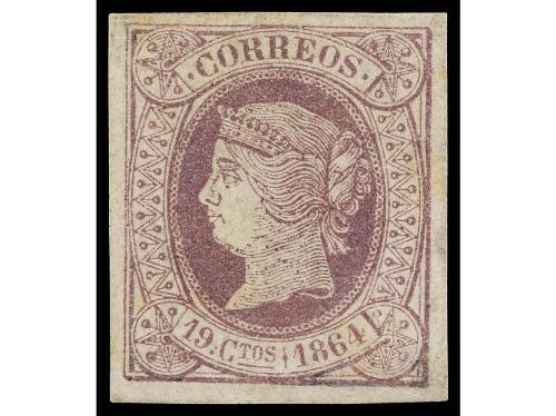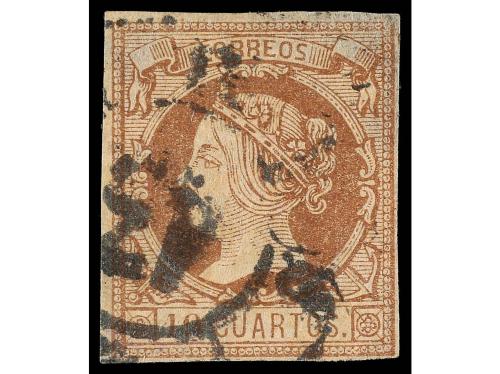 ° ESPAÑA. Ed. 54. 19 cuartos castaño. Raro sello pese a estar tratado químicamente. Cert. COMEX. Ocasiión para cubrir el hueco. Cat. 2.065€.