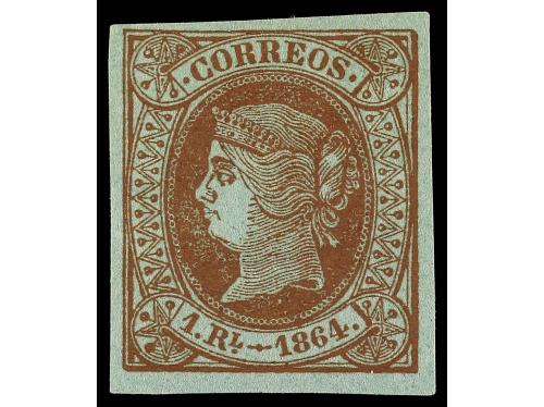 * ESPAÑA. Ed. 67. 1 real castaño sobre verde. Buen ejemplar. Cat. 275€.