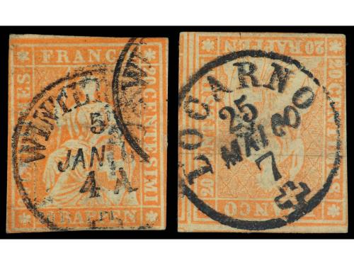 ° SUIZA. Yv. 29(2). 20 r. naranja. 2 Ejemplares, uno pliegue horizontal. BONITOS. A EXAMINAR. Yvert 160€.