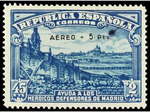 * ESPAÑA. Ed. 759. Aéreo + 5 pts. Tipo 4. Mancha de tinta en anverso y reverso. Cat. 450€.