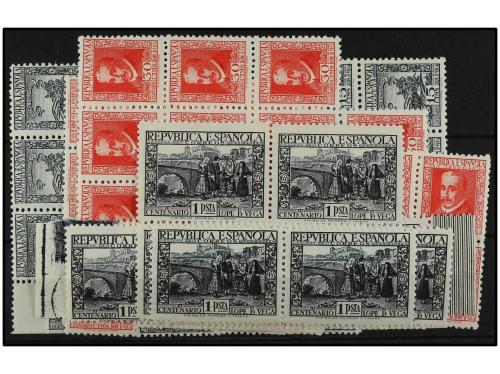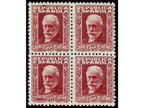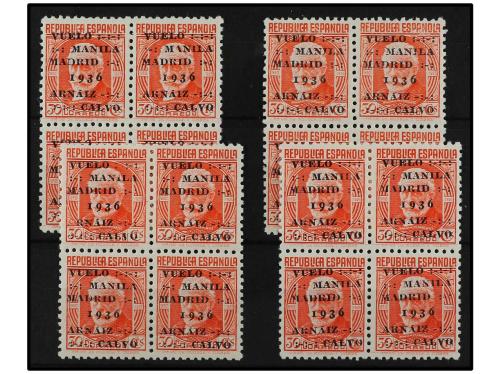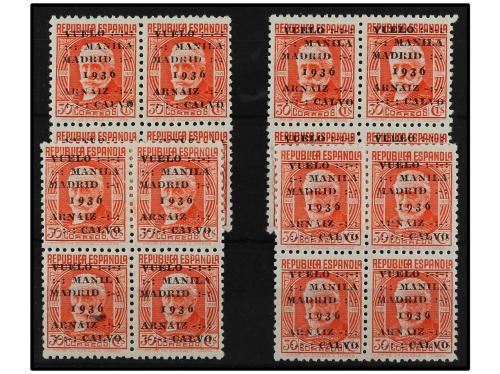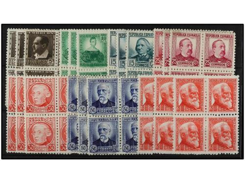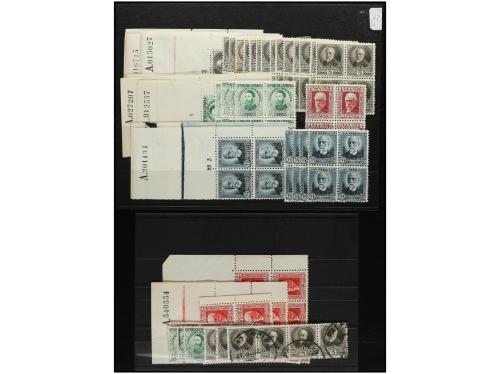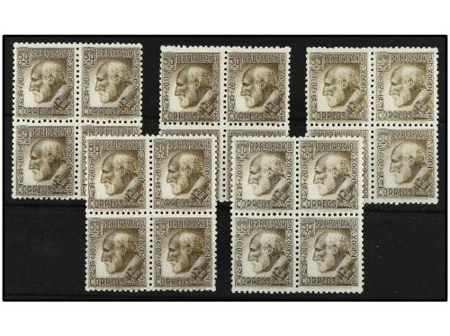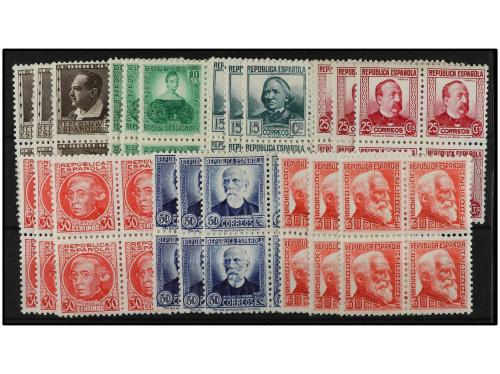 ** ESPAÑA. Ed. 677/8, 679 y 681/8. STOCK de sellos de todos los valores de la serie en bloques de cuatro en general muy bien centrados y de buena calidad. Destaca el valor clave de 30 cts. (80) y 50 cts. (88). Cat. +3.500€.
