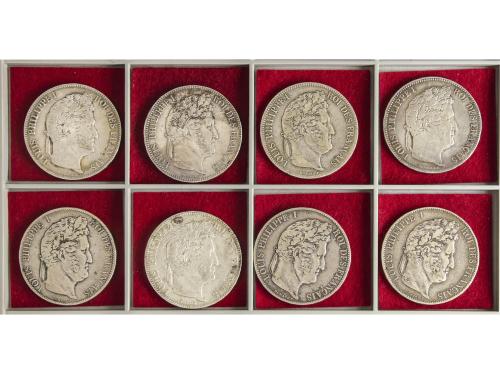 FRANCIA. Lote 8 monedas 5 Francs. 1833 a 1847. LOUIS PHILIPPE I. Incluye: 1833-A, 1834-A, 1835-B, 1837-MA, 1838-B, 1844-W, 1845-W y 1847-A. A EXAMINAR. MBC- a MBC.