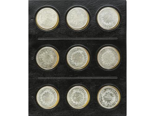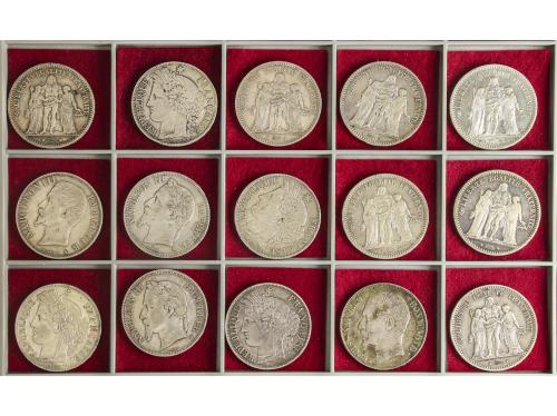FRANCIA. Lote 15 monedas 5 Francs. 1849 a 1876. II REPUBLIQUE (4), NAPOLEON III (4) y III REPUBLIQUE (7). (Algunos golpes y rayitas). A EXAMINAR. BC+ a EBC-.