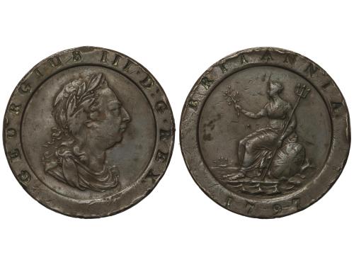 GRAN BRETAÑA. 2 Penny. 1797. GEORGE III. 55,67 grs. (Golpes). KM-619, Spink-3776. MBC.