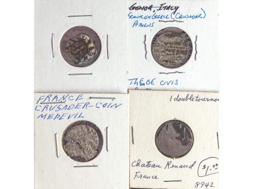FRANCIA. Lote 4 monedas. 3 Monedas medievales y un doble Tournai. A EXAMINAR. BC a MBC.