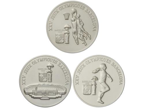 GUINEA. Serie 3 monedas 100, 200 y 300 Francos. 1988. Cada una 16 grs. Juegos Olímpicos - Barcelona ´ 92. En presentación original con certificado. KM-57, 58, 59. Tirada: 5.000 piezas. SC.
