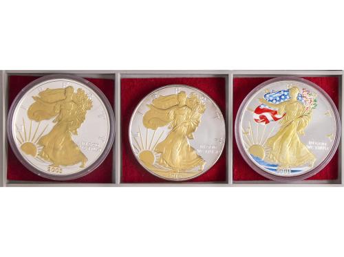 ESTADOS UNIDOS. Lote 3 monedas 1 Dollar. 2001, 2003 y 2010. Walking liberty. Dos sobredoradas y una multicolor. KM-273. FDC.
